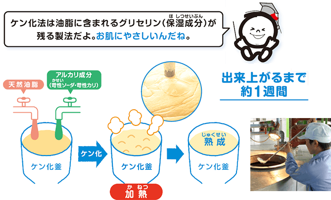 実は私たちシャボン玉石けんは、昔から無添加石けんにこだわっていたわけではありません。高度経済成長期には石油を使った合成洗剤をどんどん作り、売り上げを伸ばしていました。だけどある日、天然の油脂から作られた無添加石けんは、肌や環境にやさしいと気づいてしまったのです。その後、合成洗剤と決別し、無添加石けんの製造・販売に切り替えました。売り上げは落ち込み、結果的に17年間赤字を出し続けることになりましたが、そのときの決断に後悔はありません。無添加石けんで、健康な体ときれいな水を守る。きれいごとに聞こえますか?でも私たちは知っています。理想論だって本気で取り組めば現実になることを。いつか、肌や環境へのやさしさを考え、無添加石けんを使うことが当たり前になる世界をめざして。無添加石けんの製造・販売へ切り替えて今年で48周年を迎えるシャボン玉石けんは、ものづくりを通してこれからもきれいごとを続けます。